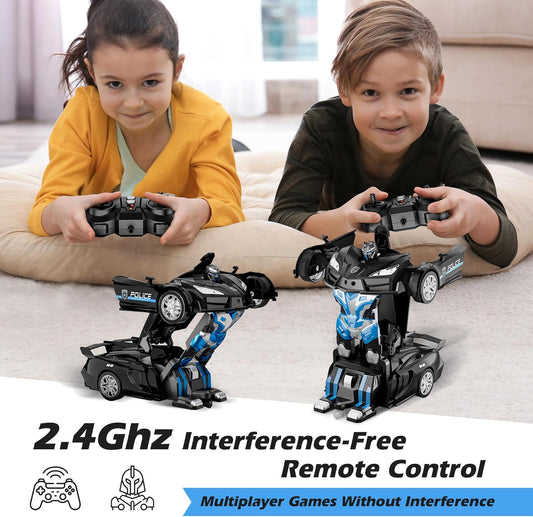 RC Transform Car, 1:18 Scale Police Robot Toy (Black)