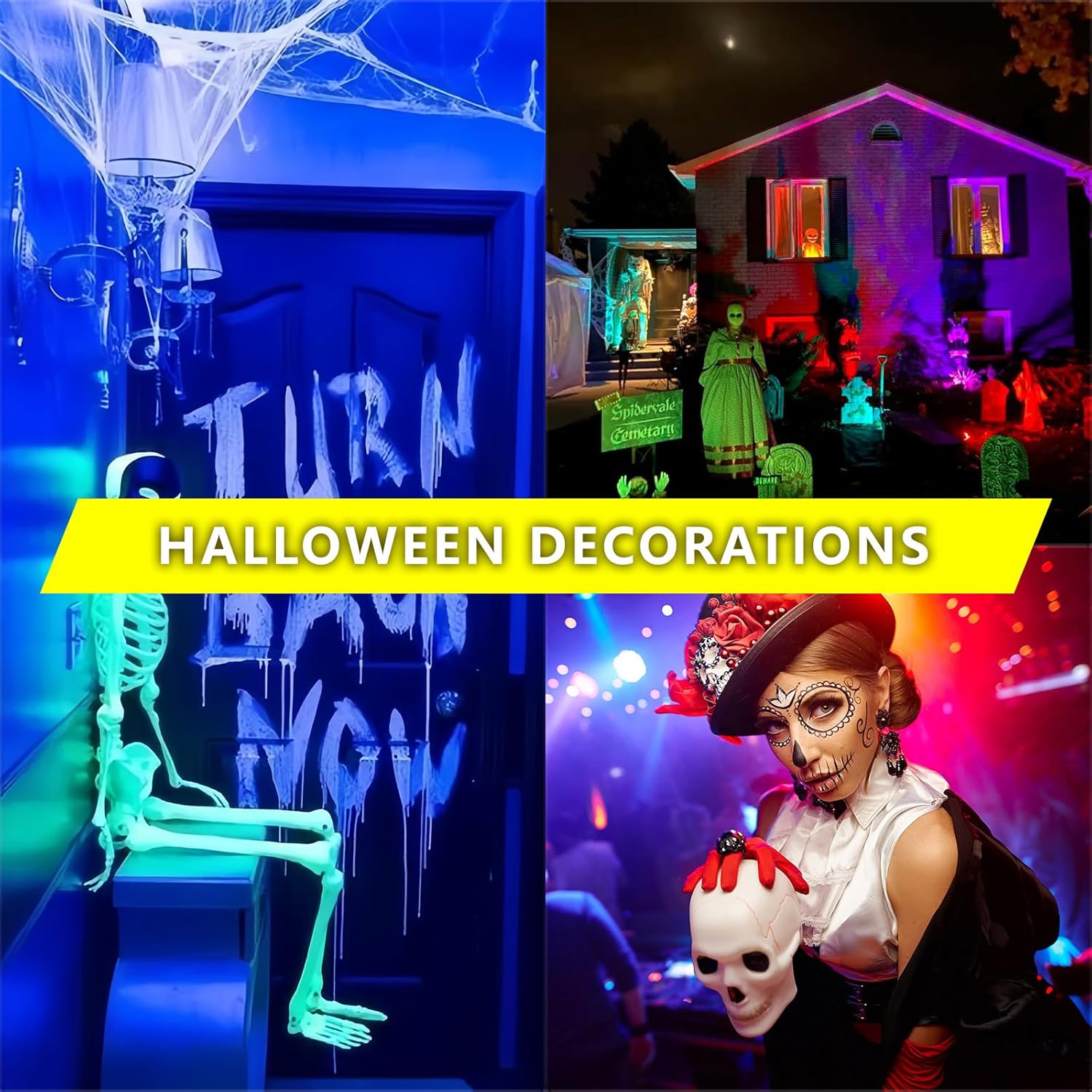 Projects a beautiful black light, Illuminates reactive pigment paints and other visible fluorescent materials and creates a visually dramatic atmosphere for indoor parties.