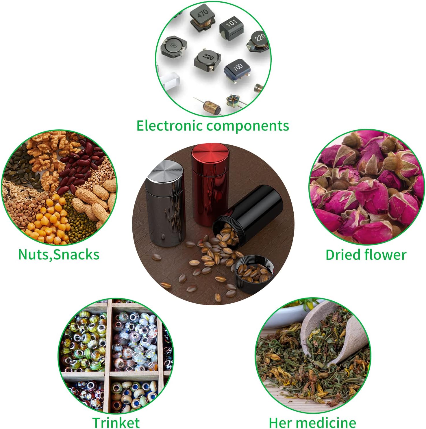 - STYLISH DESIGN 3-PACK: Available in black,silver,red are non-see-through to hold your items, equipped with a screw-on lid to keep your spices, coffee & teas or other materials fresh and protected