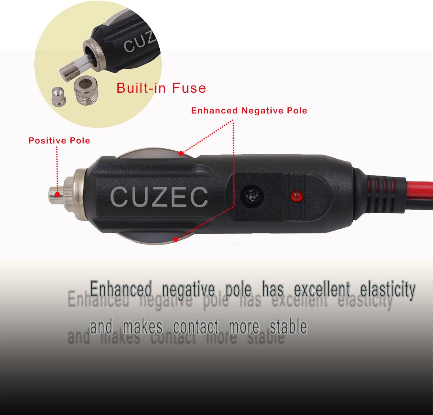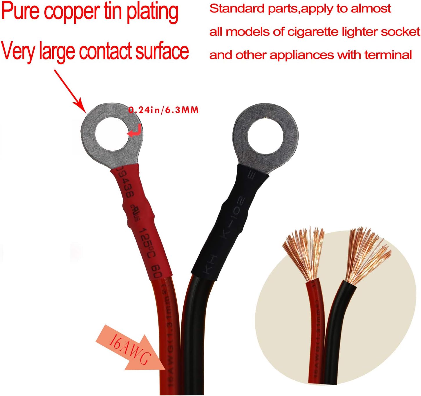 - 16 AWG extension cable lengthened up to 10.5ft / 3.2m,red cord is positive, black cord is negative.