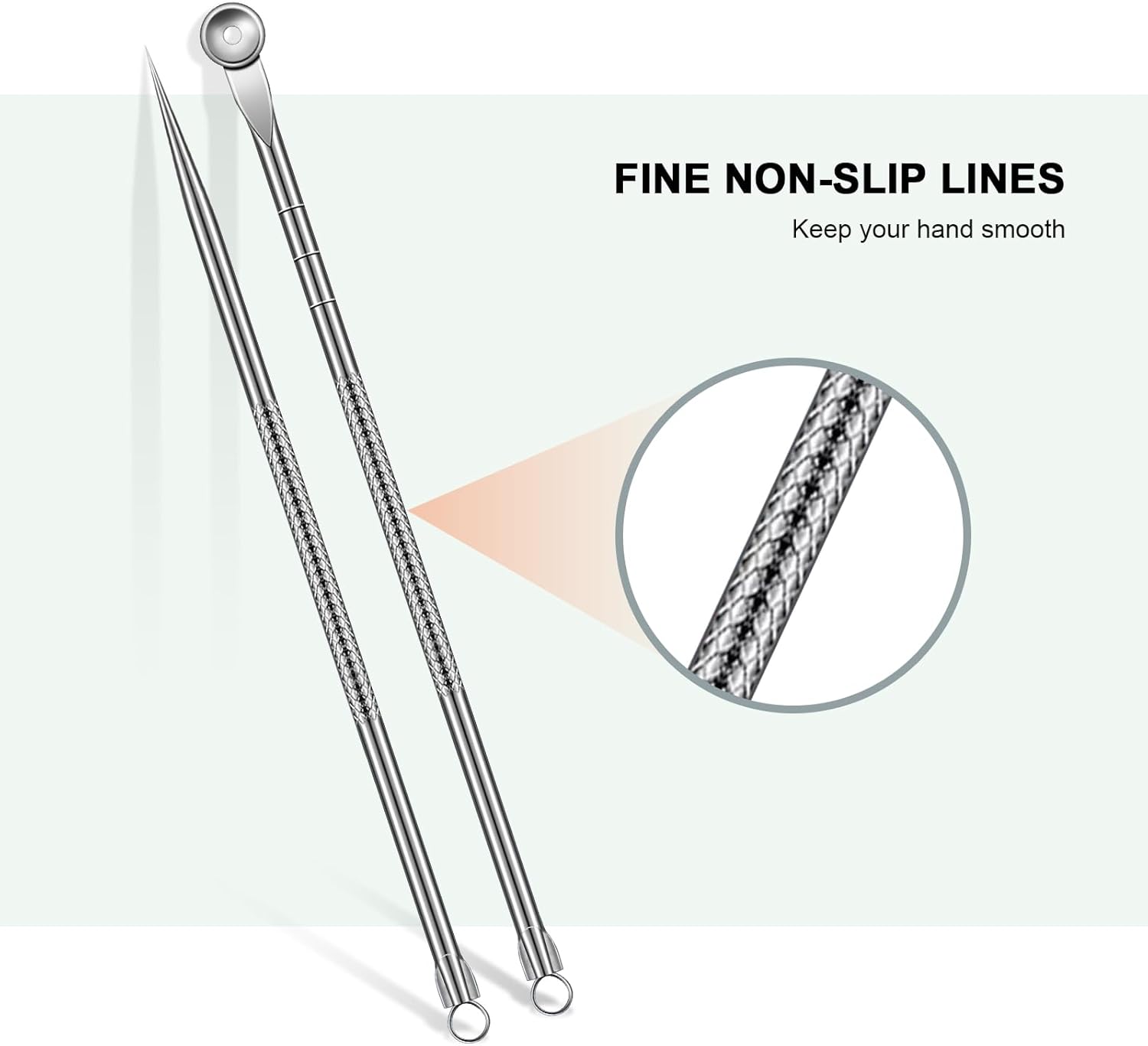 - 【Perfect Design】: The Upgraded Thin Needle 0.1mm is More Professional. It Can Easily Remove Blackhead, Acne, Defects and White Head. It Has No Pain. The Anti-Skid Handle is Beautiful and Does Not Slip When Held.