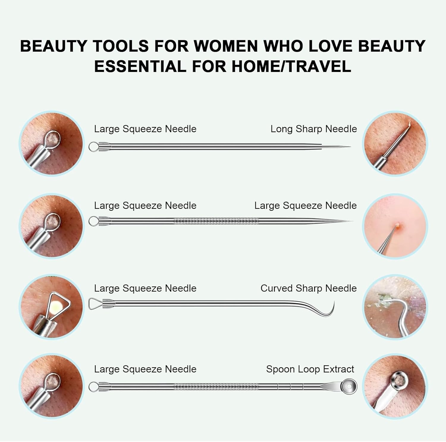 - 【Simple to Use】: The Sharp Needle is Used for Deep Cleaning of Small Acne. When The Needle Pierces The Acne, There is No Pain on The Face. The Steel Ring Can Directly Hang Out The Blackhead, Acne and Squeeze The Acne More Smoothly.
